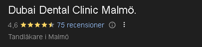 Dubai Dental Clinic har ett mycket starkt facit med höga betyg från patienter som särskilt lyfter fram det varma bemötandet och den smärtfria behandlingen. Med snittbetyg på upp till 5.0 på flera plattformar strävar vi varje dag efter att bibehålla en personlig och trygg atmosfär.